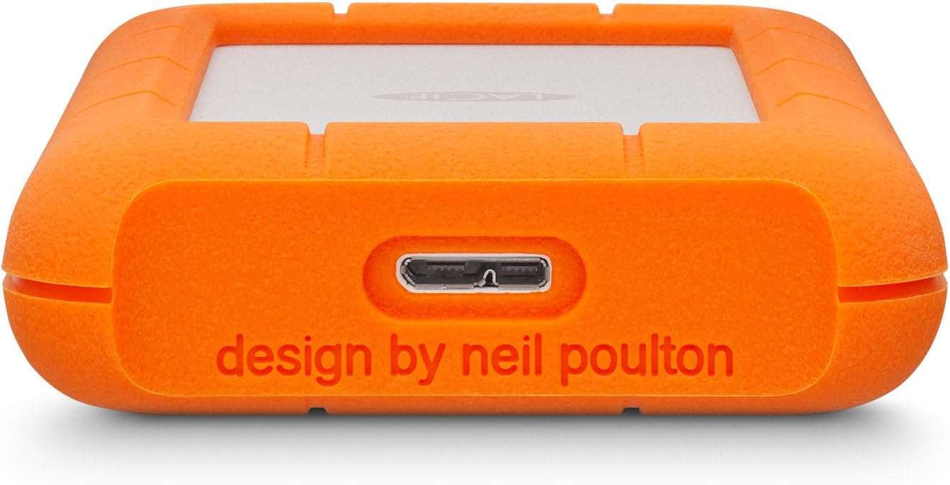 Secure your data with the LaCie Rugged USB-C Mobile Hard Drive, an essential tool for professionals and creative enthusiasts. Known for blending performance with unparalleled protection, this hard drive is a compact powerhouse that is as sturdy as it is stylish.